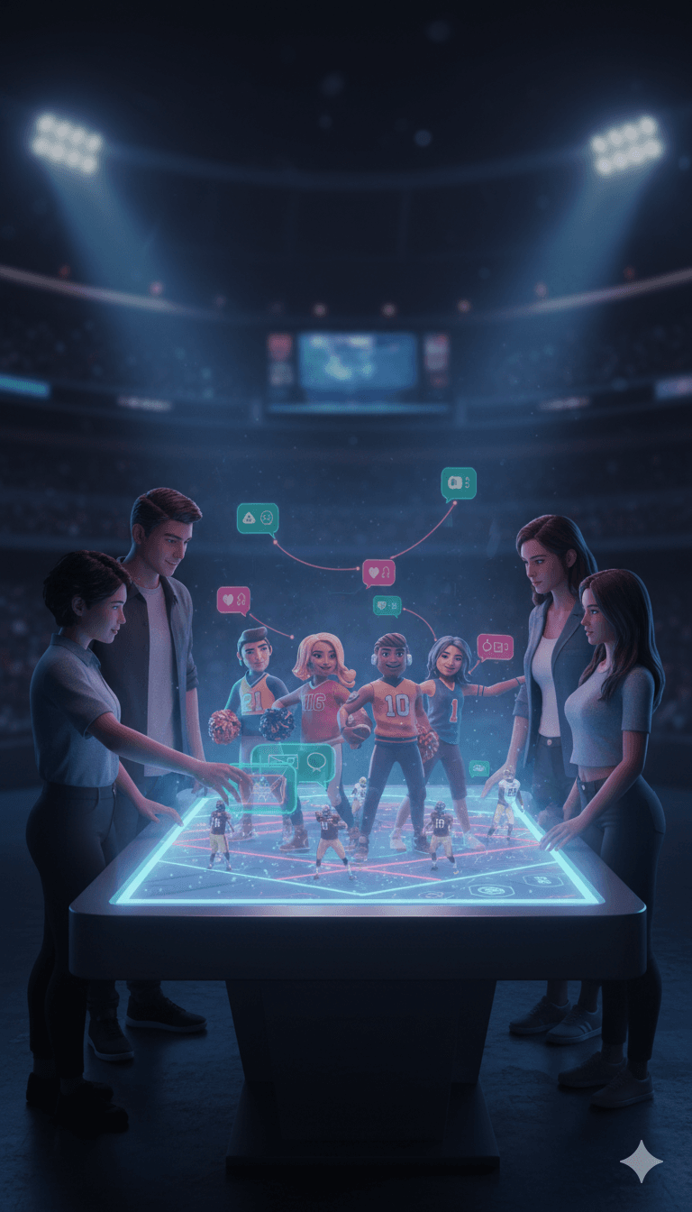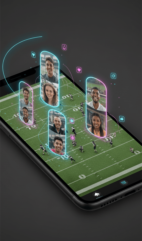 Drop into a smart second-screen that layers spatial chat, live reactions, and shared Activity Overlays over any broadcast. Feels like the bar or tailgate—minus the line.