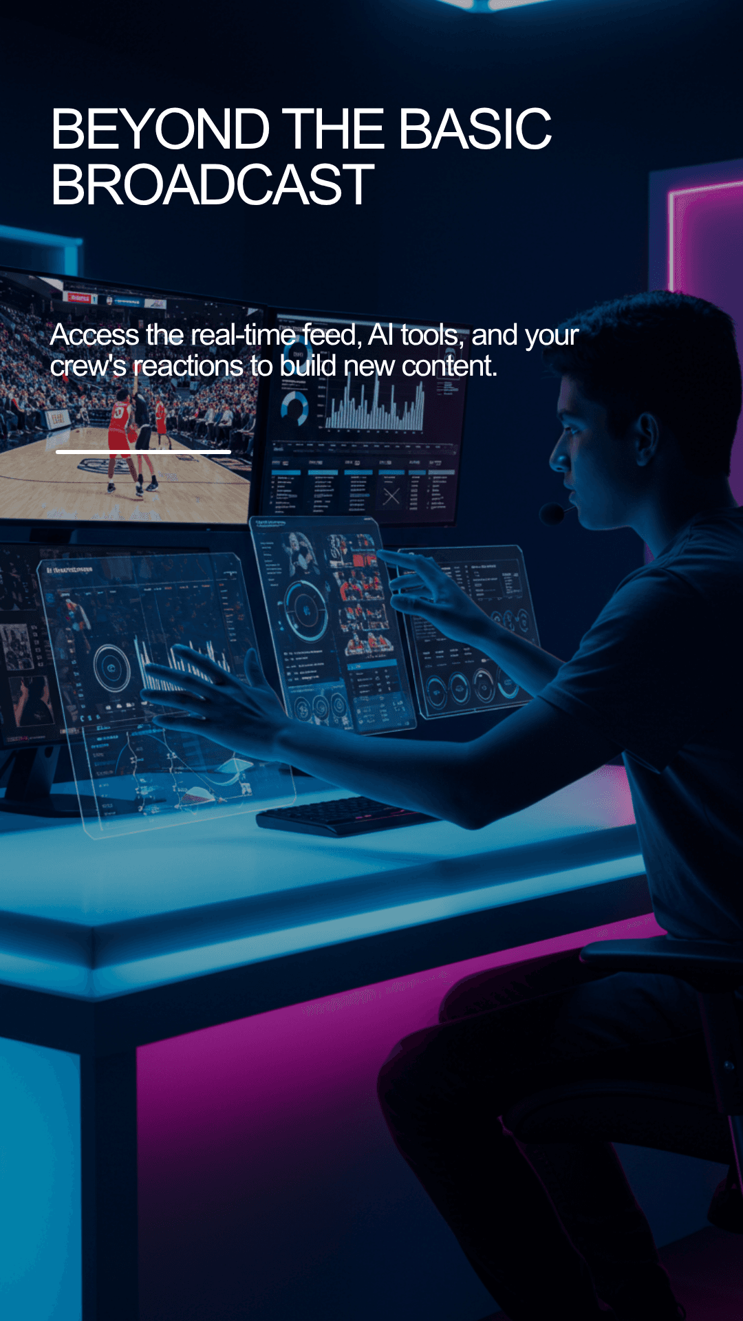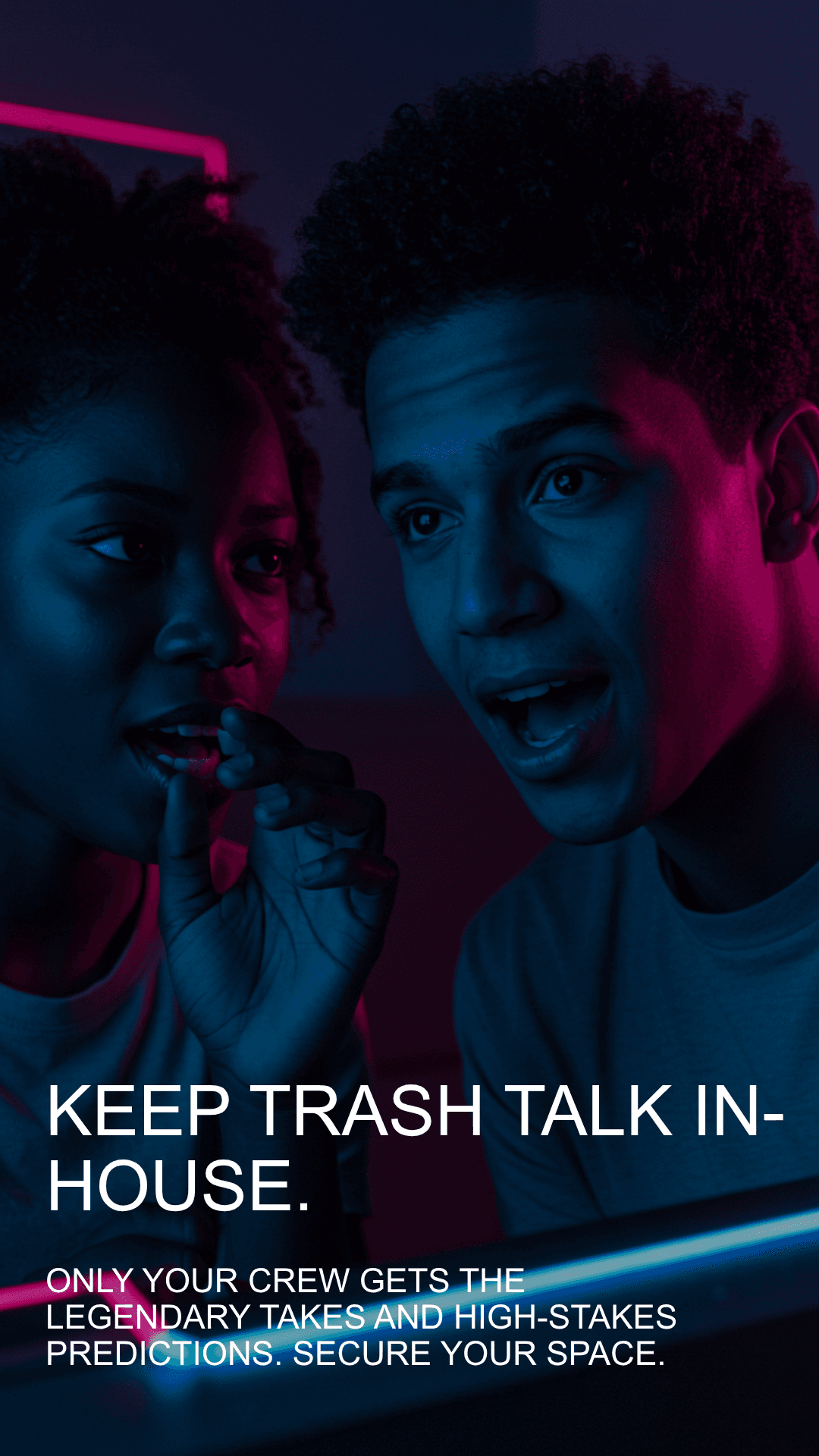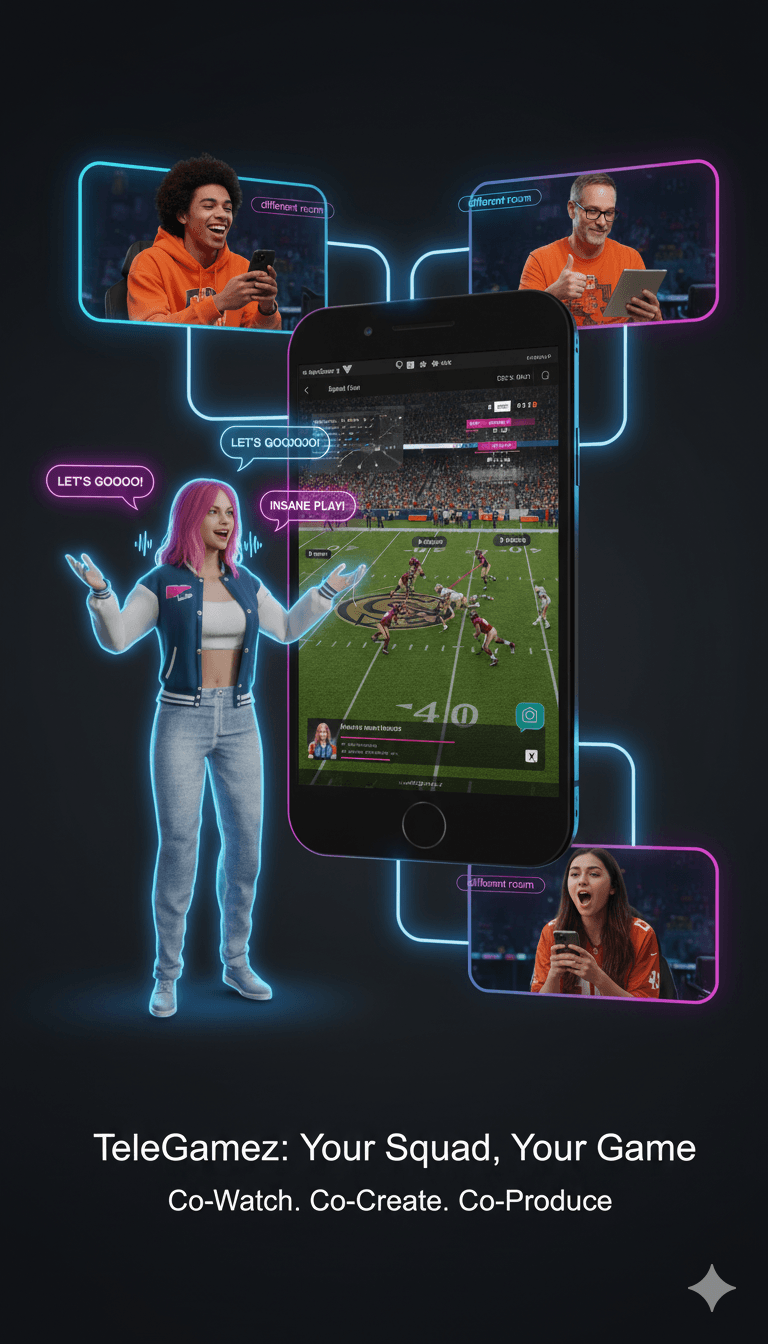 Live trivia, predictions, and adaptive commentary that remix to your crew's vibe. Tele keeps the room buzzing between plays.